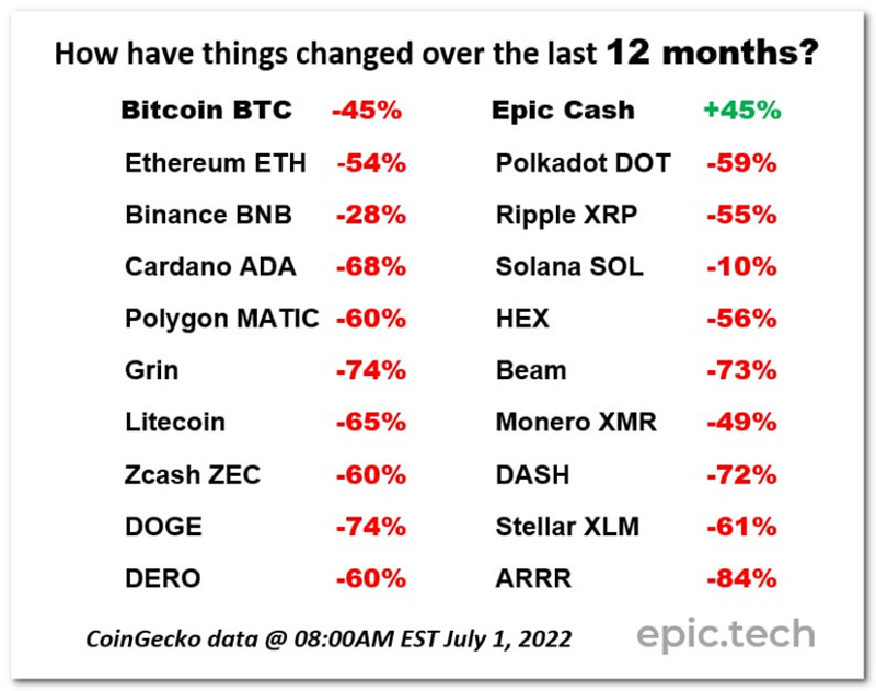 Upon studying Epic, you will understand that Epic Cash is the original Bitcoin design, yet engineered using more advanced tech. Imagine if Satoshi had a Mulligan and could relaunch Bitcoin’s original 2008 protocol using 2019 technology that enabled true privacy and multi-algo, eco-friendly mining to secure the network. If Satoshi had a Mulligan, he would have launched Epic Cash — which could withstand the brutality of this crypto winter we’re currently all experiencing.