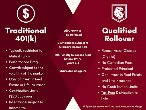 As you can see, they share some similarities, and there are areas where the Qualified Rollover shines above a 401(k). A Qualified Rollover puts your Qualified Money in your control to invest in more robust asset classes and pass on a tax-free legacy to your heirs.